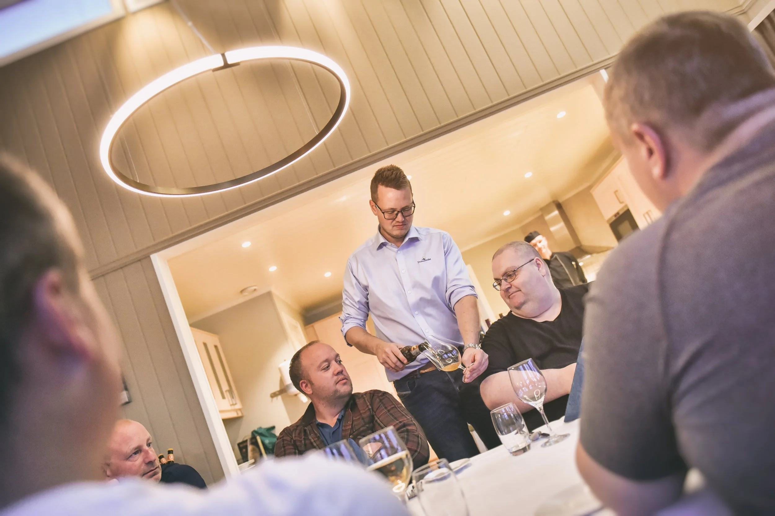 Programmet inkluderer en flott 3-retters middag tuftet på lokale spesialiteter. Her kommer kokk og servitør fra Dolmsundet Hotell ned til huset, dekker opp, tilbereder og serverer et utsøkt måltid i husets store dining, med sjøutsikt såklart.